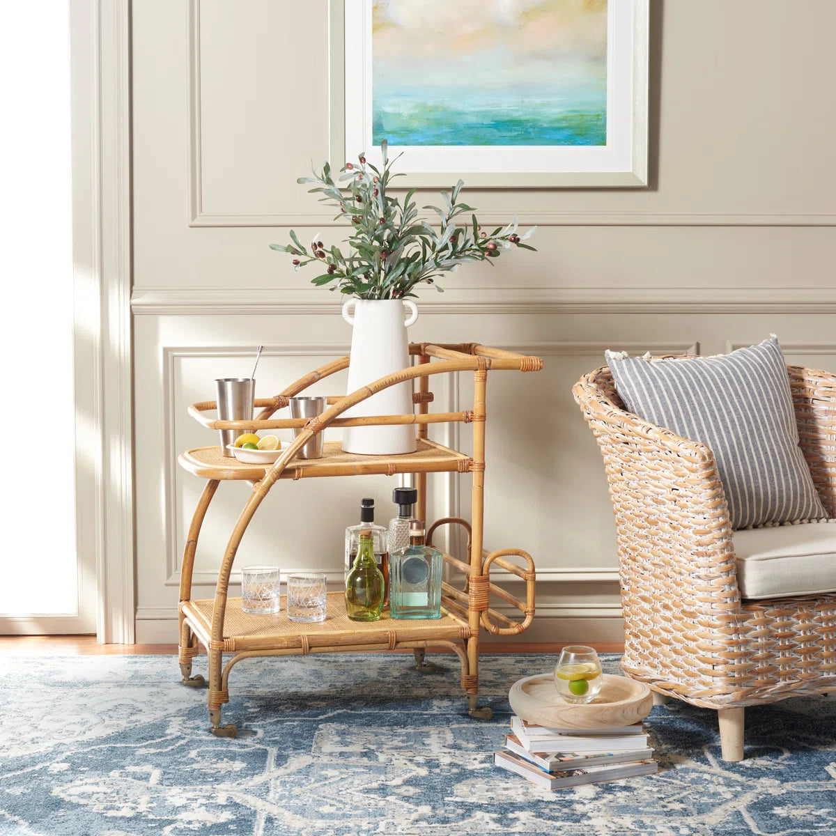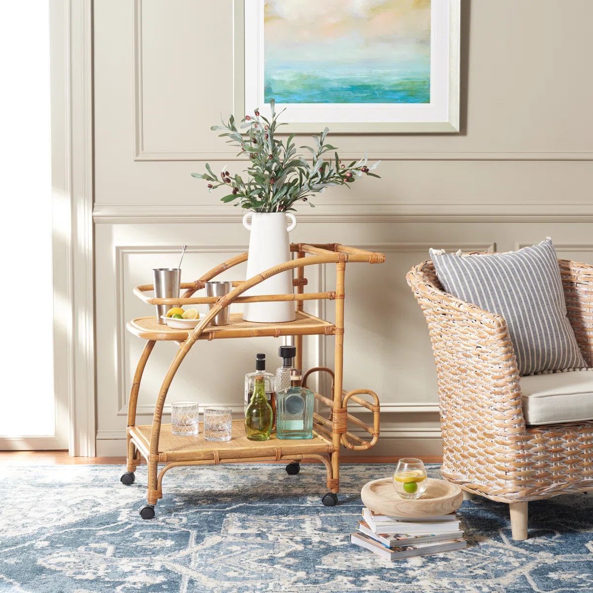 Buxton Rattan Bar Cart